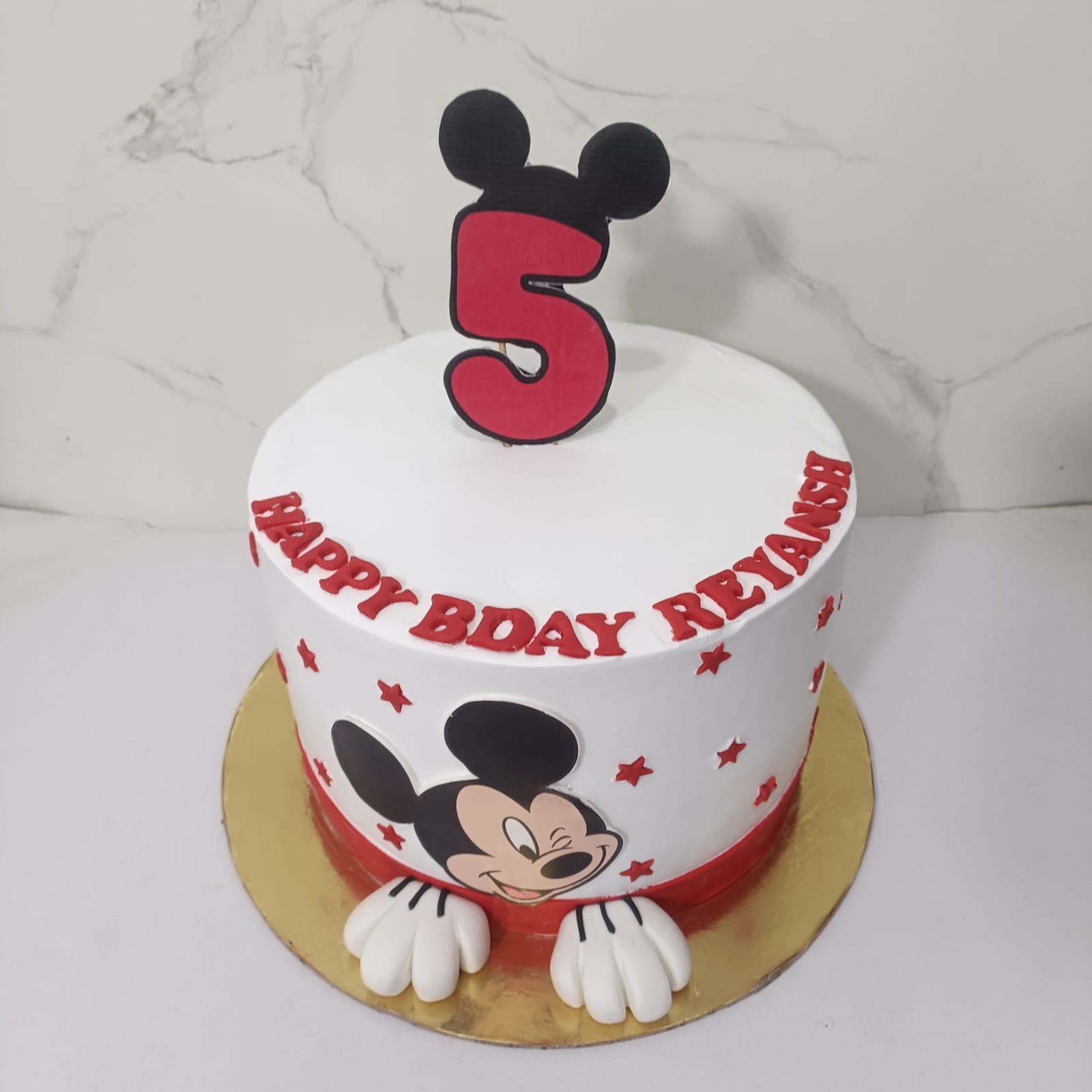 Make your child’s 5th birthday truly magical with our delightful Mickey Mouse Cake! Perfect for young fans of the beloved Disney character, this cake brings Mickey’s cheerful spirit right to your celebration. Expertly crafted by our talented bakers, the Mickey Mouse cake features a vibrant design with Mickey’s iconic ears, bright red shorts, and charming smile, making it the centerpiece of your party table.