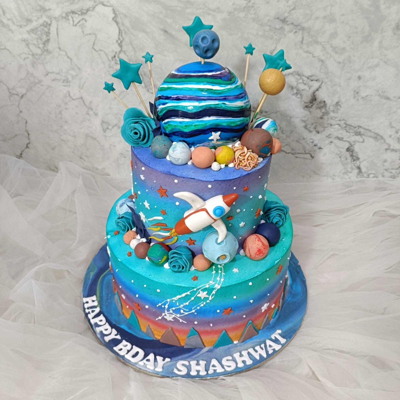 Customization is another highlight at Yummy Cake. You can personalize the cake with your child’s name, age, or favorite space elements to create a unique custom space cake. It also works beautifully as a galaxy theme cake or a fun astronaut cake design for themed parties.